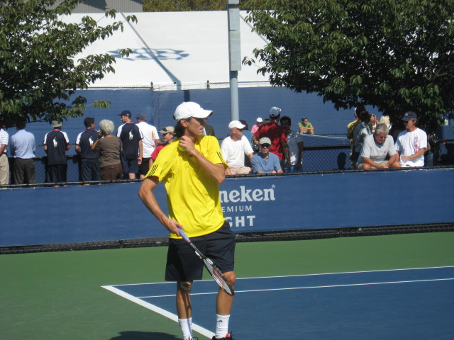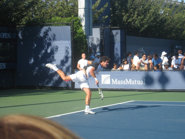 Lapentti serves the ball as best as he can; he made Minar work for the victory.  Many people were watching by the third set; several were saying encouraging things.  “You can do it.”  “Make him work for it.  Don’t give it to him.”  “You can play on one foot.”