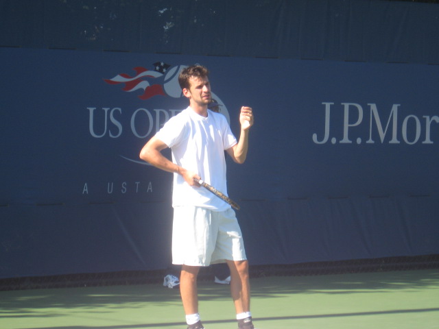Minar won the game because Lapentti couldn’t return all of his serves.  The two men paused and spoke for several moments at the net.  Minar was noticeably concerned about his opponent; Lapentti patted him on the cheek.