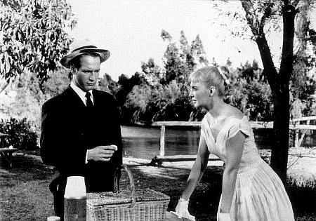 But, the old man doesn’t see much of himself in his son, and soon thinks of Ben as family. Varner’s lady-friend Minnie Littlejohn (a very funny Angela Lansbury) also seeks to be part of the family. When her father (not so subtlely) suggests that Clara and Ben would make a good pair, she is horrified. He wants grandkids to carry on his name, power, land, etc. To Clara, Ben represents heat, uncertainty, and other things that “nice girls” keep repressed. Her blatant hostility doesn’t turn him off; he looks at her with unguarded interest. “Miss Clara, you slam the door in a man’s face before he even knocks on it,” he says with disappointment. During the picnic scene (see above photo), Clara clearly states what she is looking for in a husband. She has not been saving herself up for a man like Ben, she insists. Hmm, you shall see… Below are some great lines from the film: