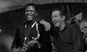 The guys meet two beautiful American tourists- straight-talking jazz lover Lilian (Woodward) and socially-conscious teacher Connie (Diahann Carroll). After Ram meets his old friend “Wild Man” Moore (Louis Armstrong) on a train, he confidantly approaches Connie. This must’ve raised some eyebrows in ’61- a white man hitting on a black woman. Of course, it was no big deal in France. Ram invites her to hear him play at the club. Connie brushes off his come-on and comments that she has a white friend with her. Soon Lilian arrives to meet Connie; we see her keen interest in Ram.