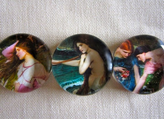 4. Set of 3 John William Waterhouse jumbo glass magnets (gorgeous/useful; GREAT gift for teachers, moms, artistic personalities)