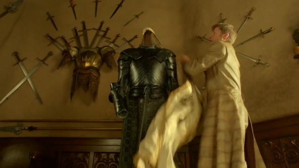 This scene could’ve been creepy, but Margaery kept it sweet and innocent. And how cute a name is Ser Pounce!? Tommen (Dean-Charles Chapman) seems like a great little guy- so unlike Joffrey (thank the Old Gods and the Seven).